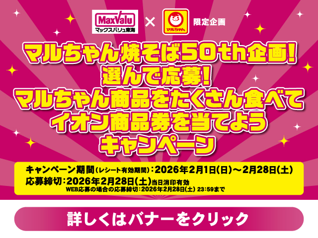 マルちゃん焼そば50th企画!選んで応募!マルちゃん商品をたくさん食べてイオン商品券を当てようキャンペーン