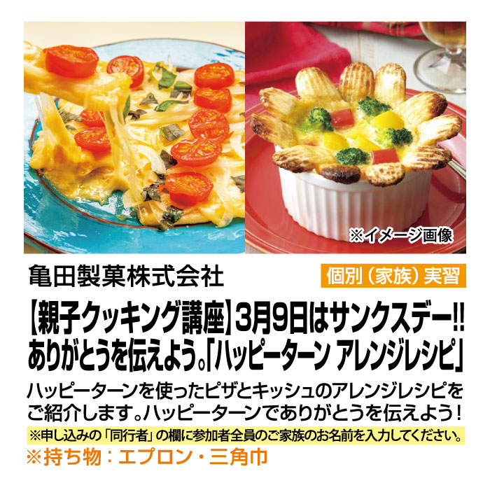 (14:00~)【親子クッキング講座】 3月9日はサンクスデー!!ありがとうを伝えよう。「ハッピーターン アレンジレシピ」