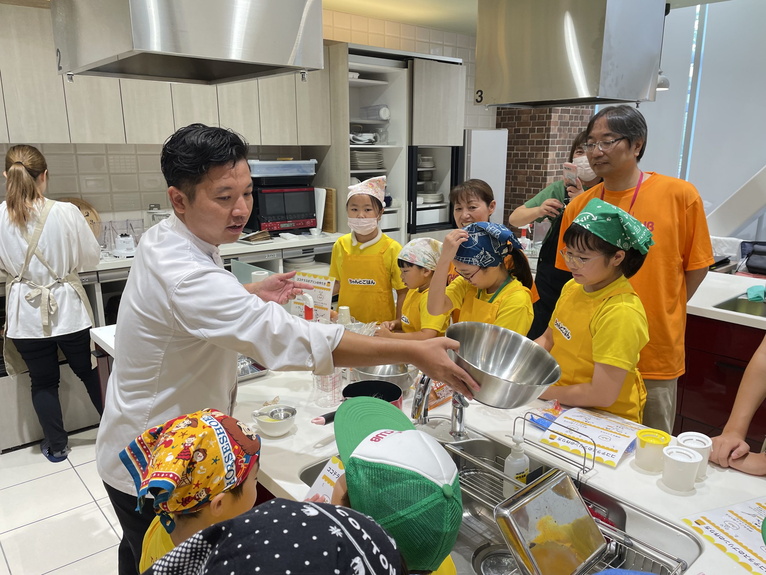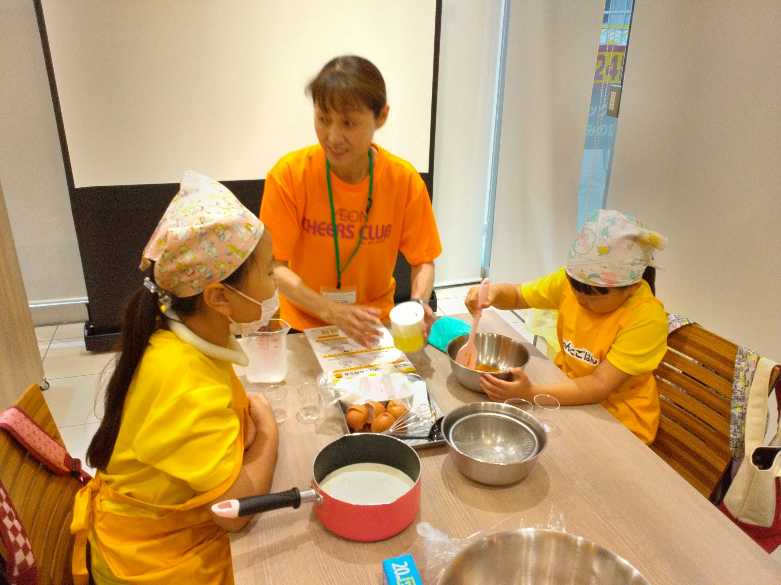 プリン・シュークリーム・ミルクセーキ作り体験 2025.09.14 デイリーファーム様とちゃんとごはんスタジオ千種にご協力いただき、デイリーファーム様の新鮮なたまごを使ったプリン、シュークリーム、ミルクセーキ作りをしました。 材料を間違えないように計ったり、卵黄と卵白を分けるところが緊張しましたが、プリンは色も濃くとても濃厚な味に出来がりました。どれもとても簡単に作れるので家でも作ります!