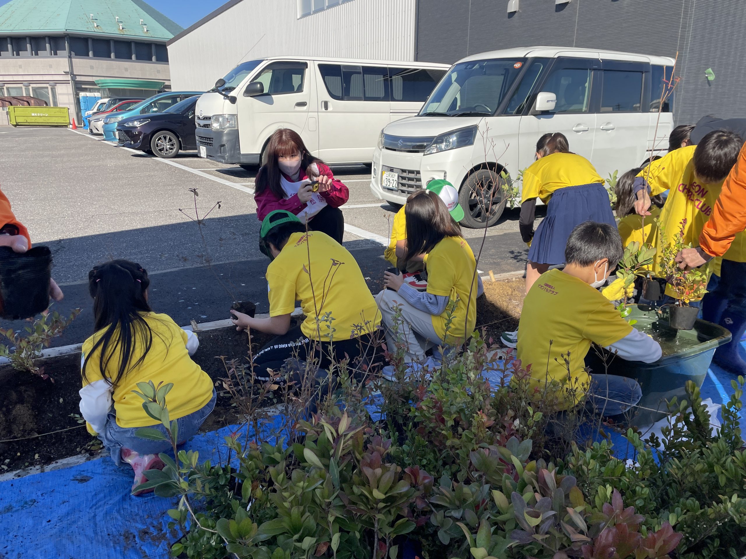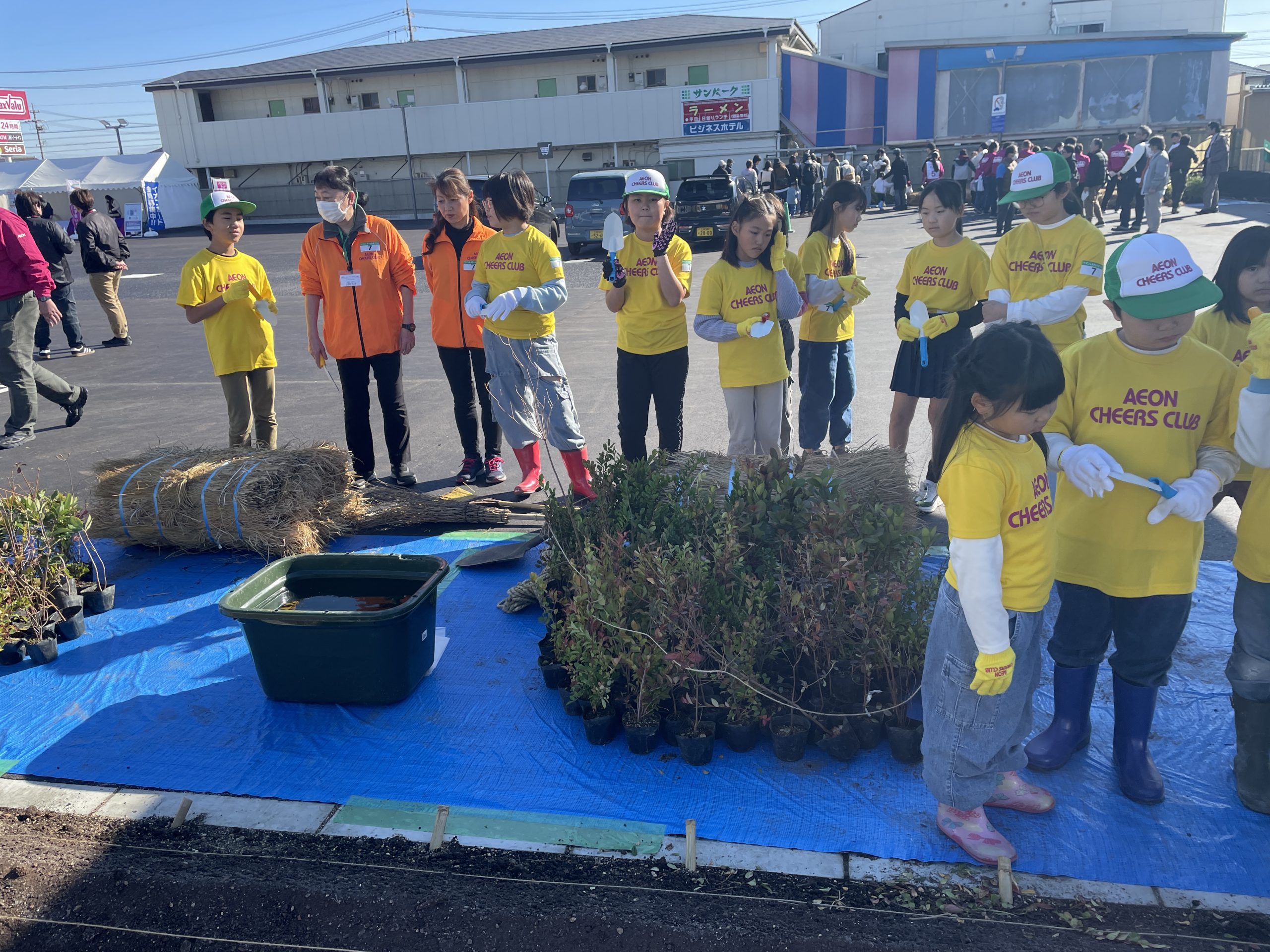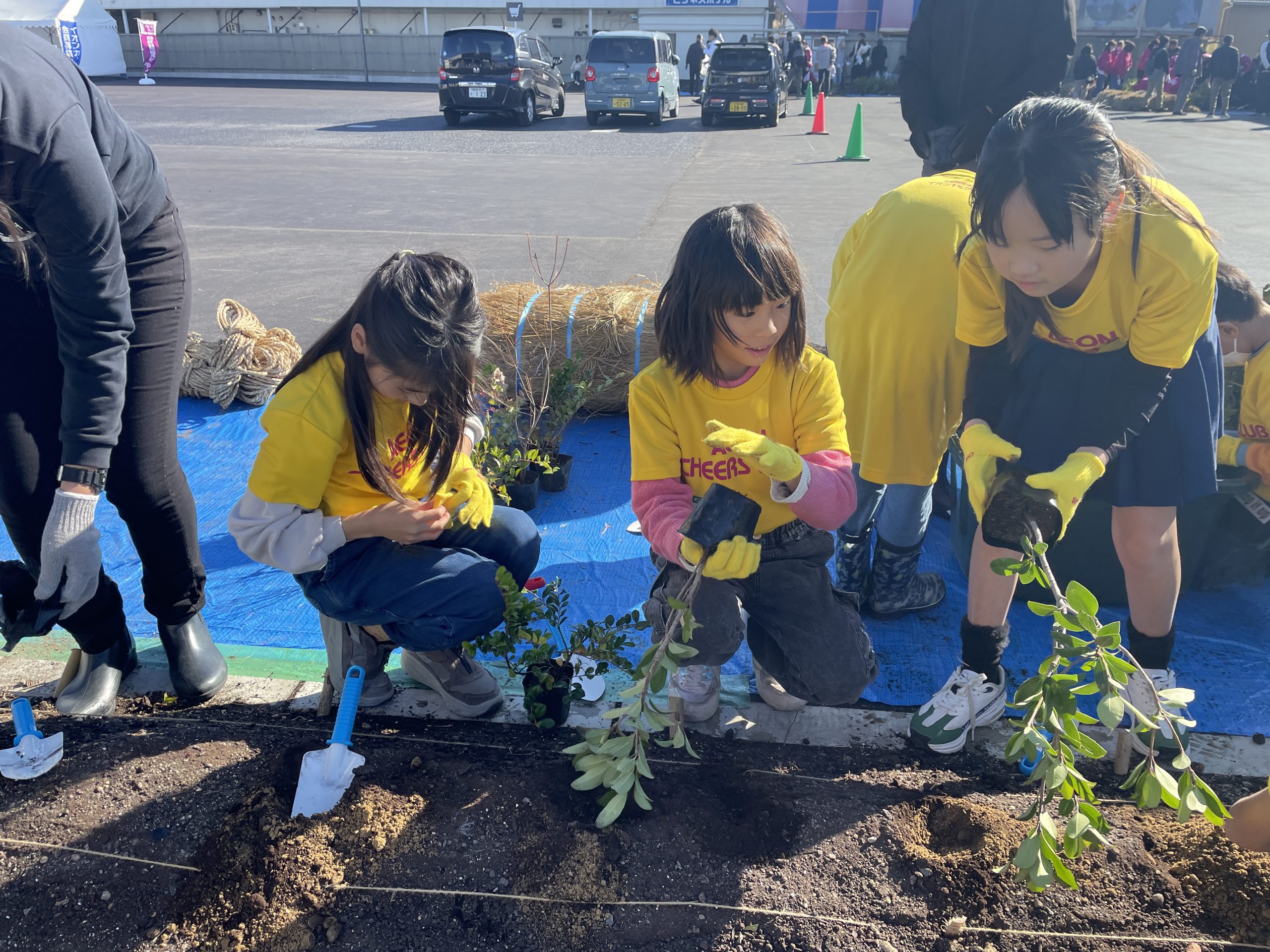 マックスバリュ高浜呉竹店植樹祭に参加し、苗木の植え方の説明と植樹をしました。たくさんの参加者の前で苗木の植え方を説明したので緊張しました。植樹は小さな苗木の赤ちゃんを優しく持って植え、寒さや乾燥から守るためにわらを敷き詰めました。元気にすくすくと大きく成長して欲しいです。