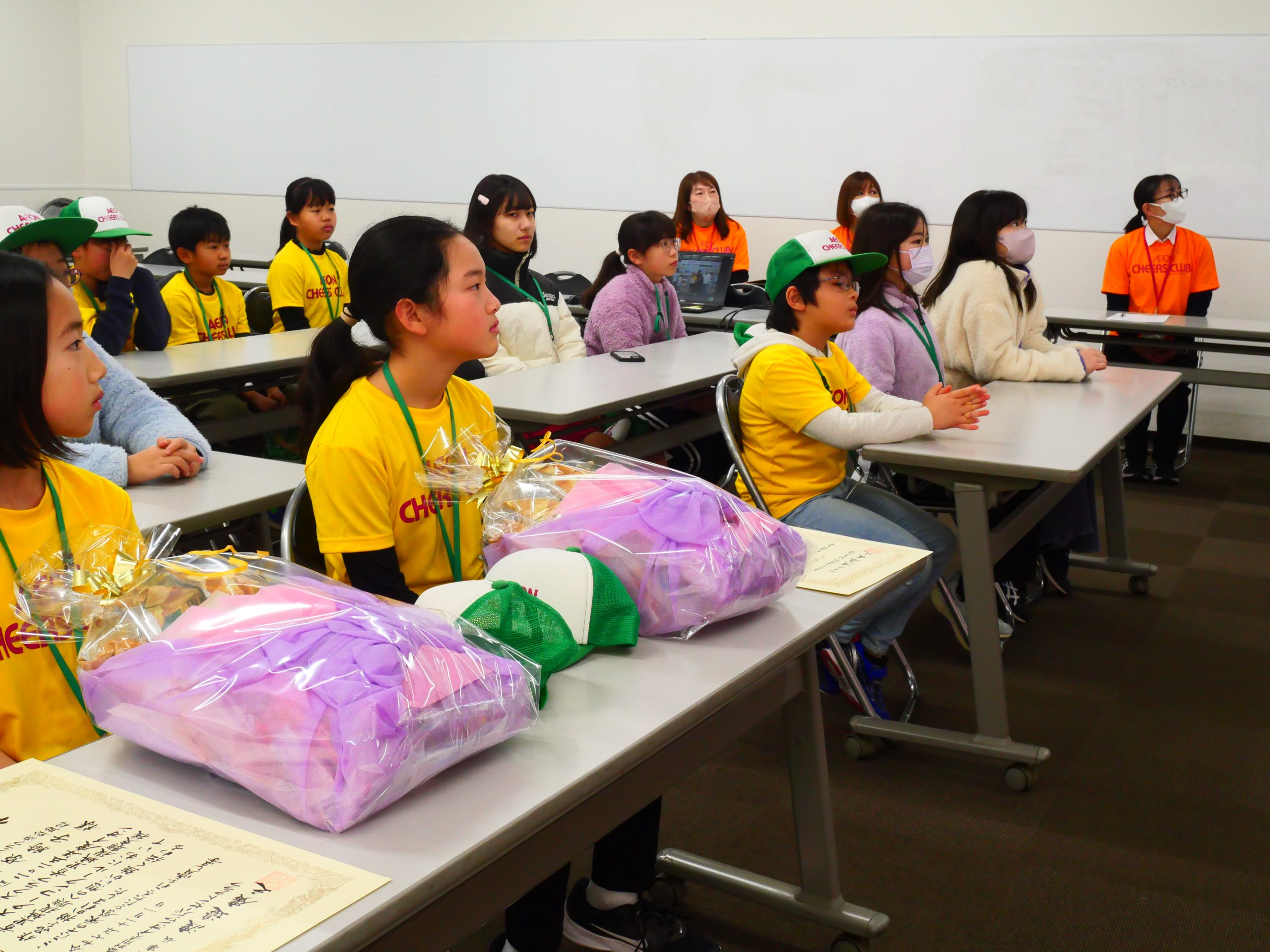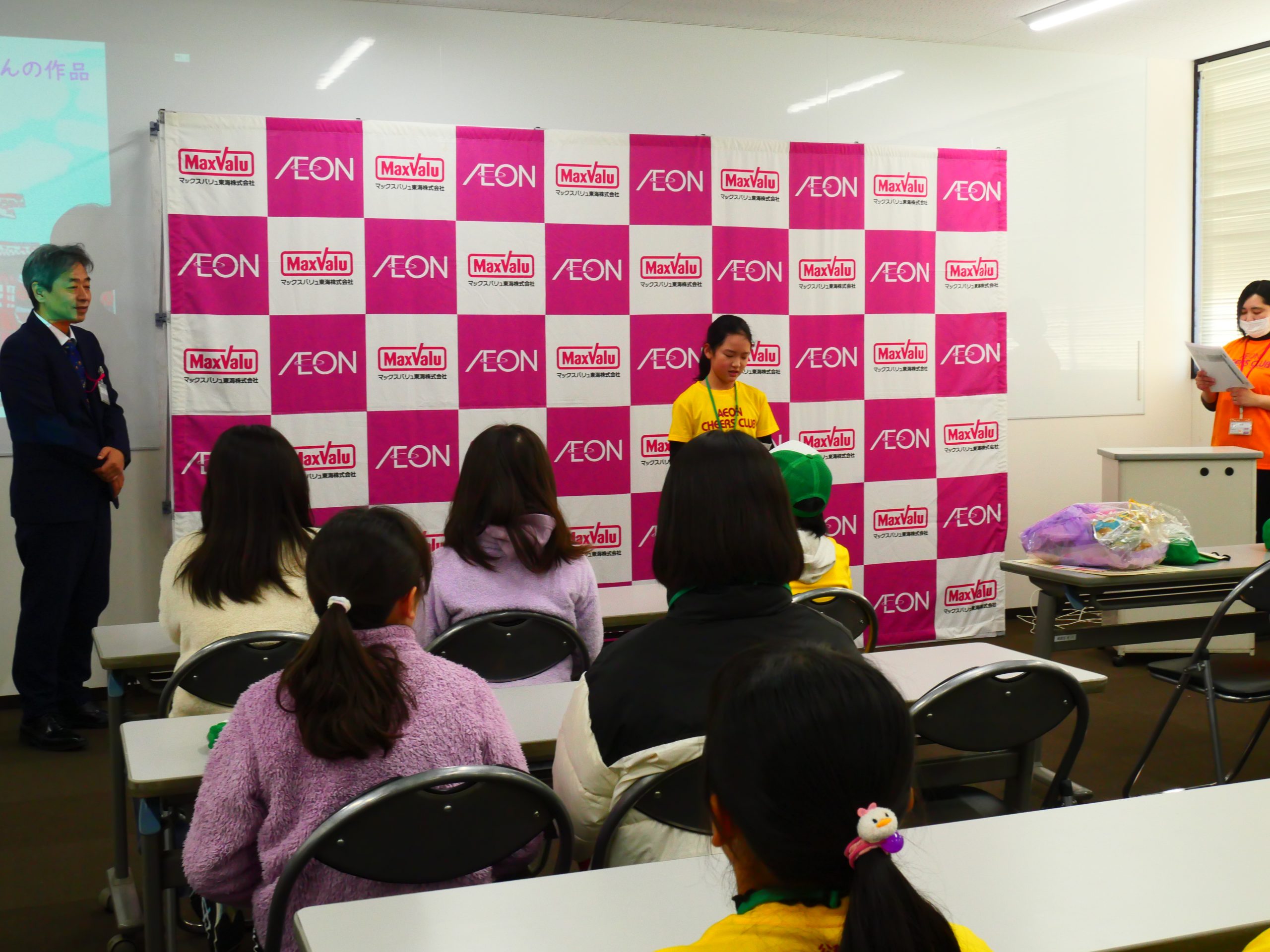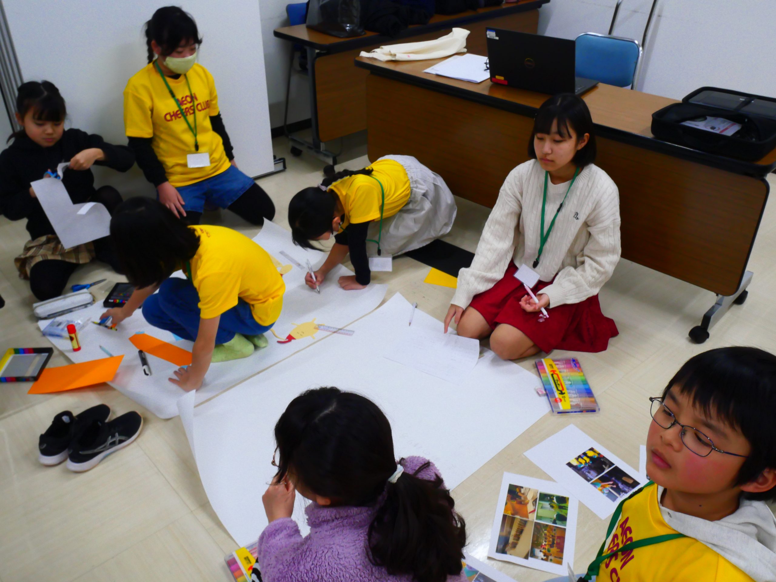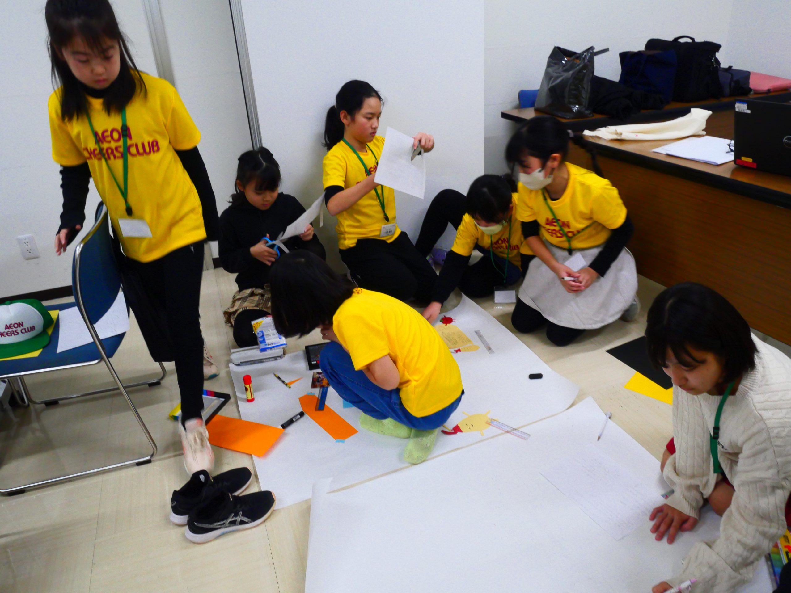 首里城復興支援ポスターコンクール受賞者表彰式・壁新聞づくり② 2026.01.17 浜松本社で首里城復興支援ポスターコンクール受賞者表彰式と壁新聞づくりを行いました。表彰式では、受賞した2名が社長から賞状を受け取りました。緊張しましたが、受賞した喜びをみんなの前でお話することができました。2回目となる壁新聞づくりでは、4つのグループに分かれ内容を考えたり、画用紙を切って飾りを作ったりしました。ごまの可愛らしいキャラクターも誕生し、壁新聞づくりが楽しく進んでいます♪