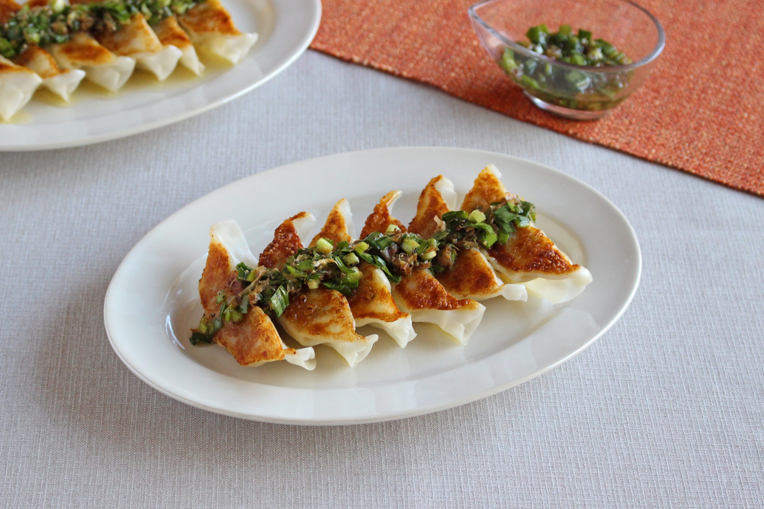 餃子にON!かつお節と酢のにら入りだれ