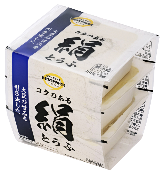 トップバリュベストプライス「コクのある絹とうふ」を使用しました。