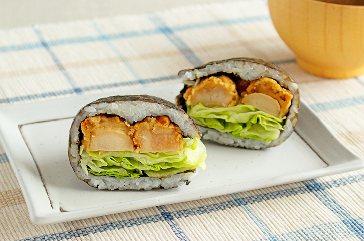 170℃の油できつね色に揚げる。器に盛り付け、千切りにしたキャベツを添える。