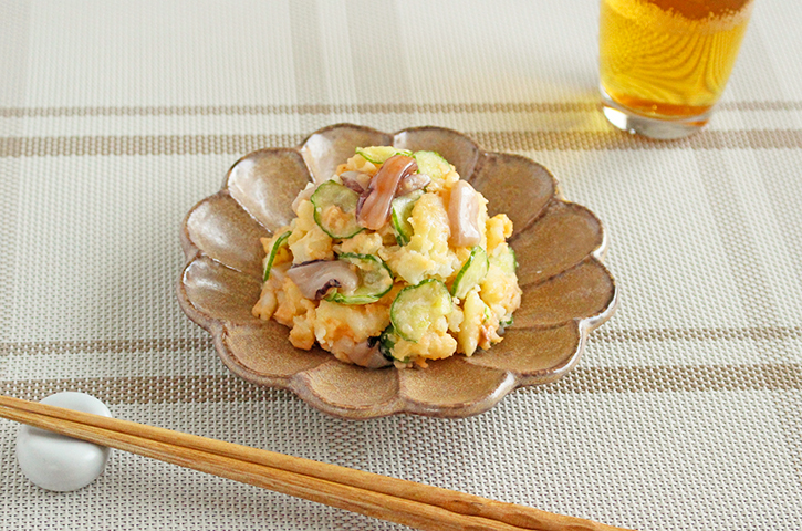 鮭は塩をふってラップをかけ、電子レンジ(500W)で1分30秒加熱し、皮・骨を取り除いてほぐす。