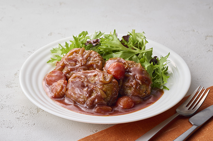 - ボウルにひき肉を入れてよく練り、キャベツ・玉ねぎ・Aを加え、粘りがでるまでよく混ぜ、タネを作る。キャベツの中心にしっかりと詰める。