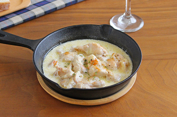 - 油を熱したフライパンで鶏肉を炒める。肉の色が変わったら1の野菜を加え、火が通ったら2を加え、ドレッシングを回し入れ、サッと炒め合わせる。