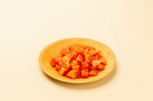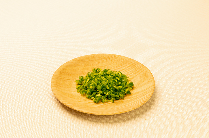 立方体に切る方法で形が均一に仕上がるため、和え物やソース作りにも便利です。