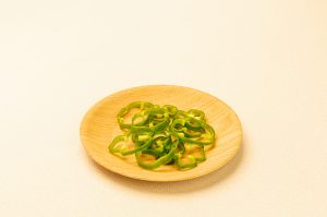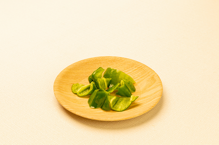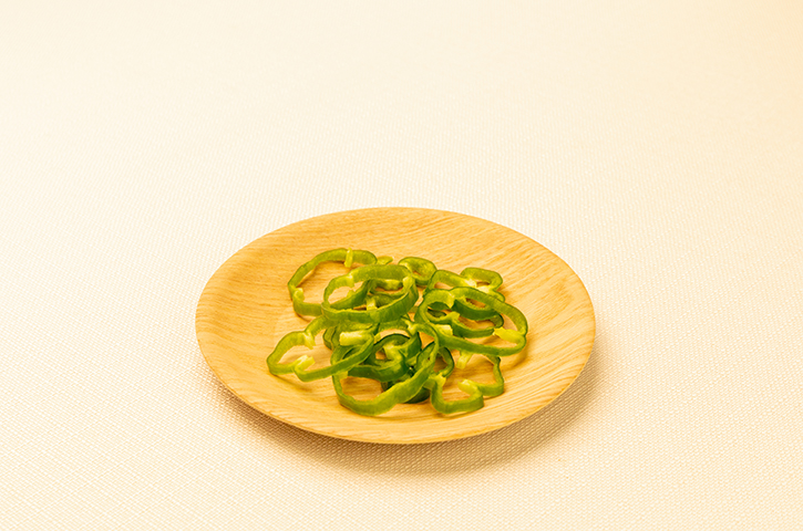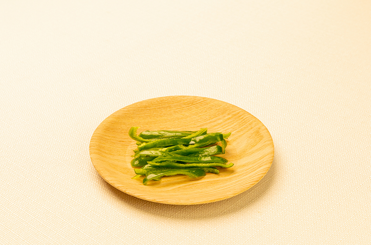 ピーマンの細切りは繊維に沿って切ると、苦みがやわらぎ食べやすくなります。