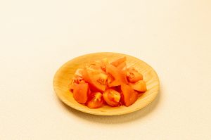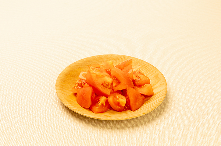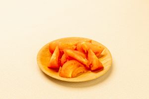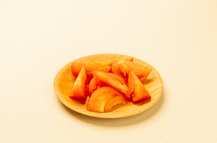 トマトのくし切りは、切ってそのまま料理の付け合わせにすることもできます。