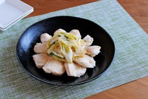 塩を使わずに昆布だしとぽん酢で作る蒸し鶏のレシピです。