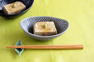 ごま豆腐は主に白すりごま・くず粉・水を、加熱後に練って冷やし固めた副菜メニューです。