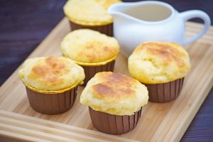 プロテインヨーグルトを入れて材料4つで作れるカップケーキです。
