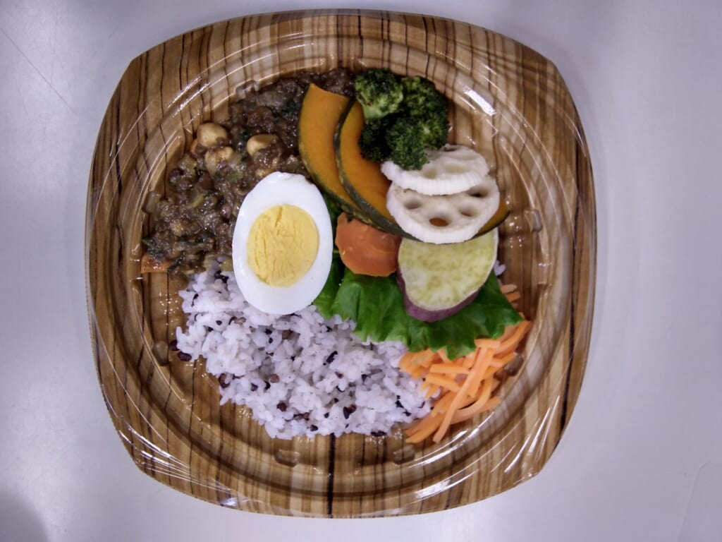 商品化が決まった「鈴華御膳・彩り野菜と豆のキーマカレー」の販売は、11月5日(土)・6日(日)。